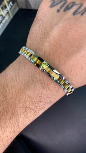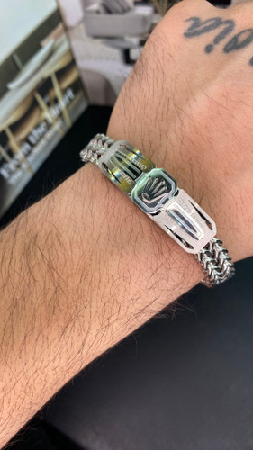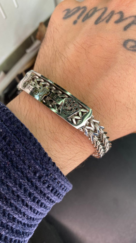 دستبند مردانه استیل مارک رولکس پلاک دار