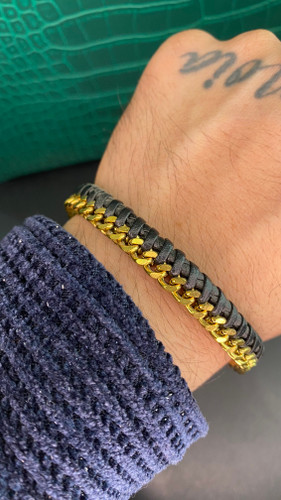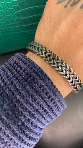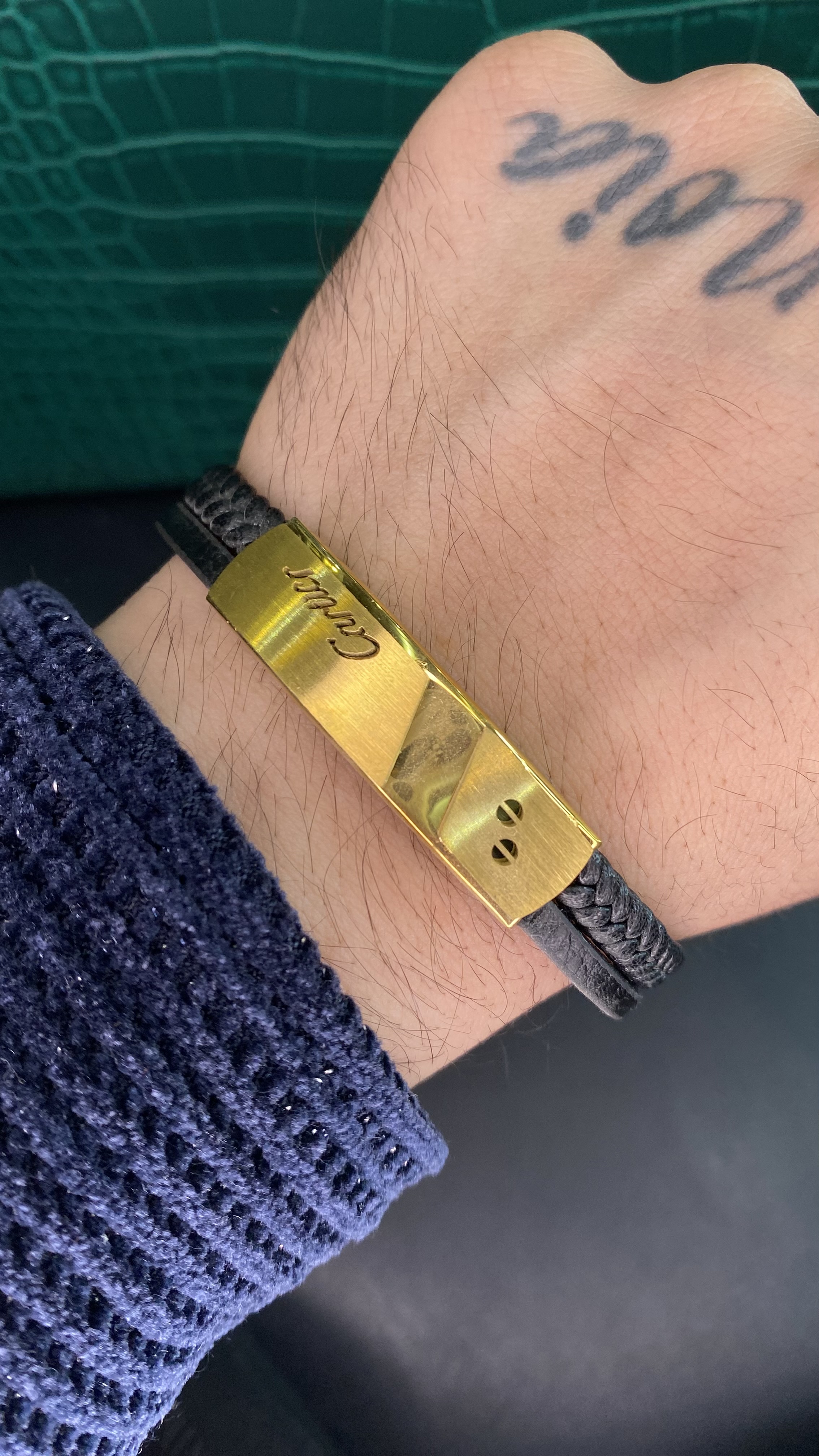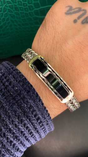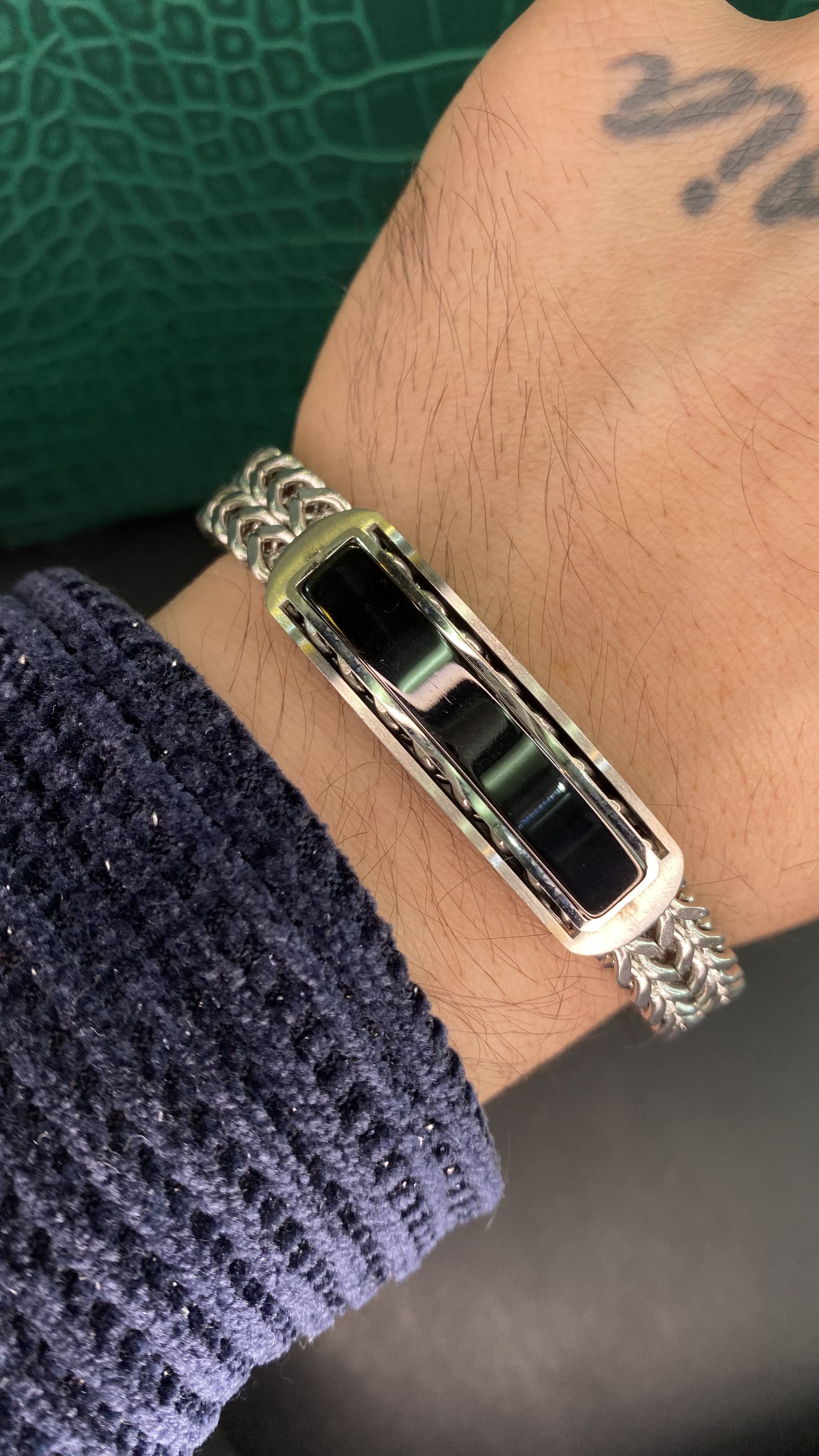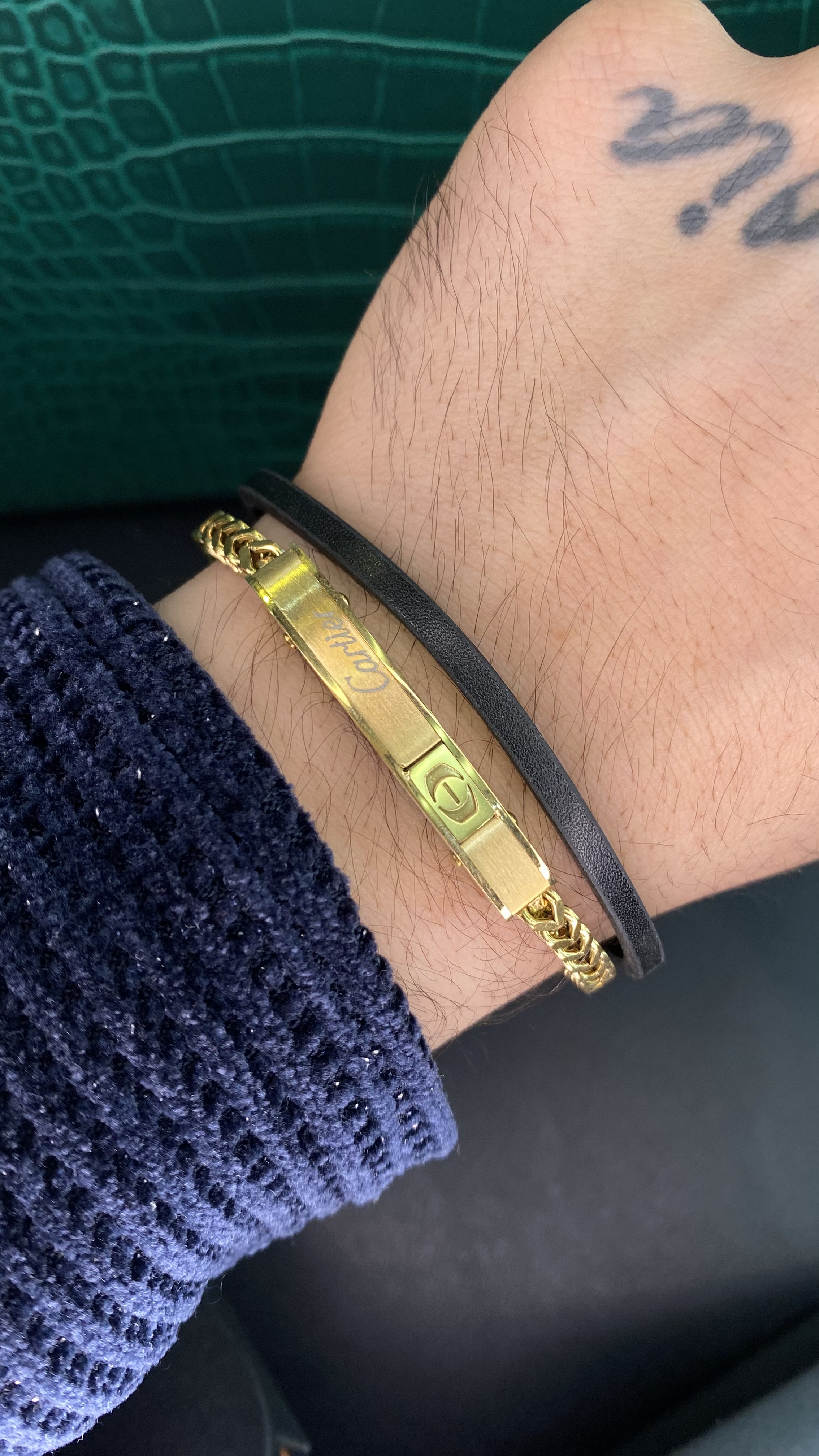 دستبند مردانه استیل کارتیر دوبل پلاک سنگ دار
