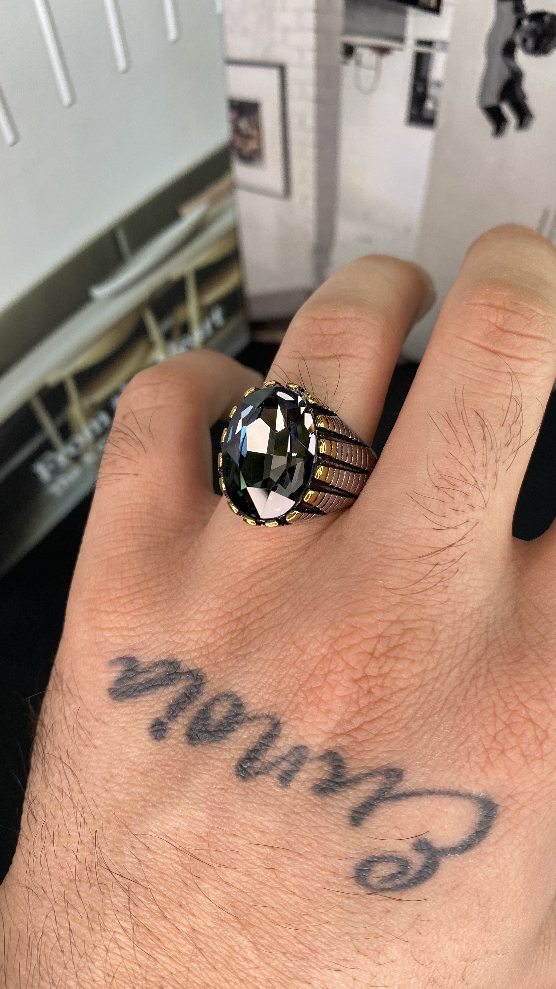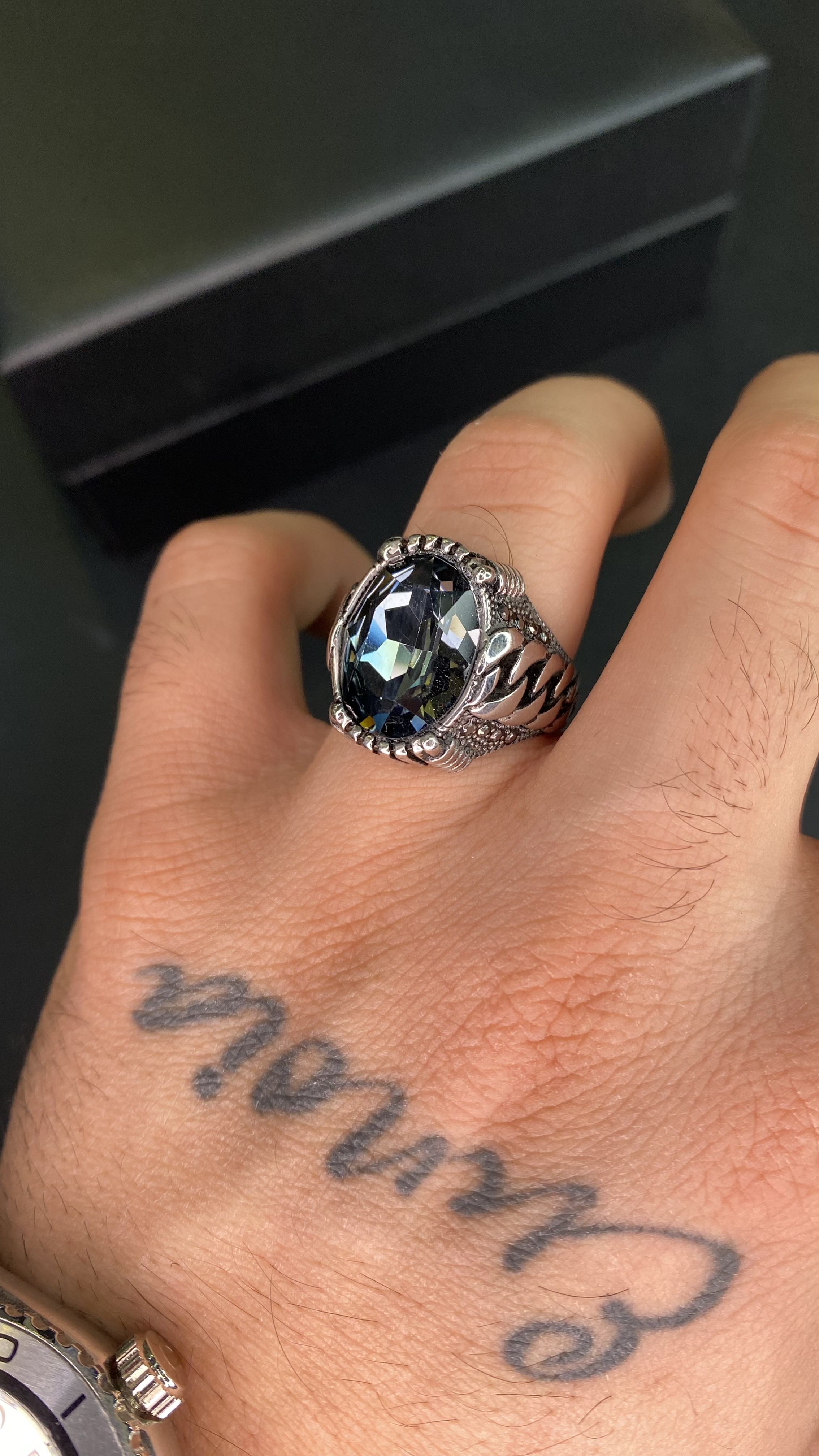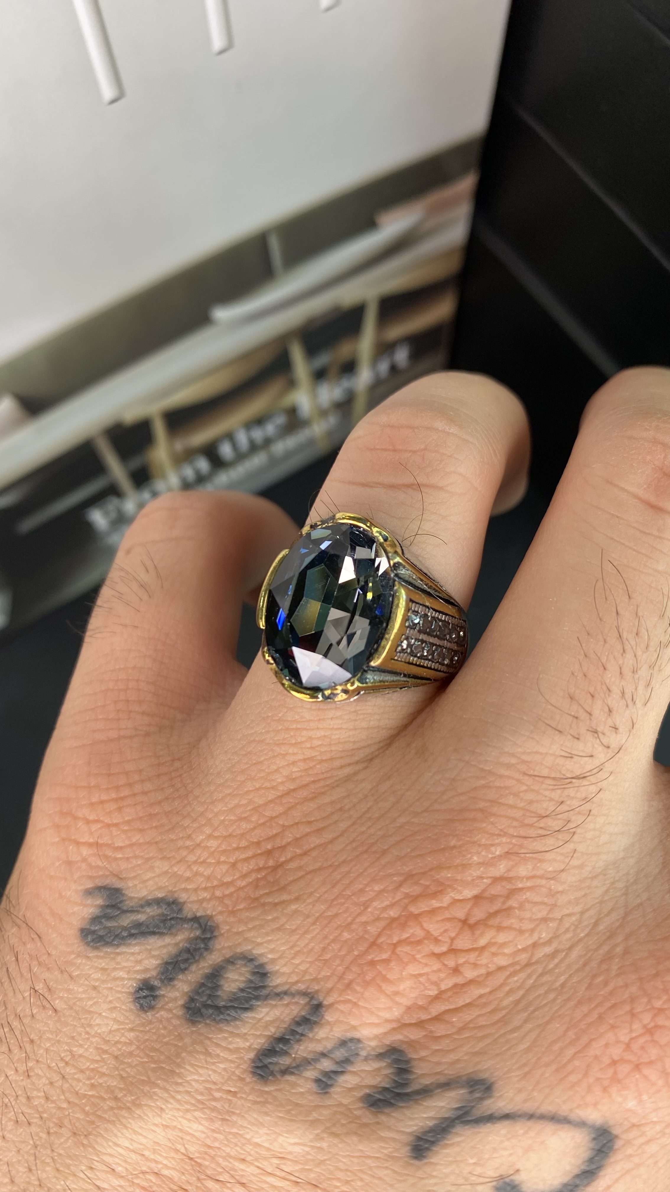 انگشتر مردانه استیل سنگ دار طرح شمشیر
