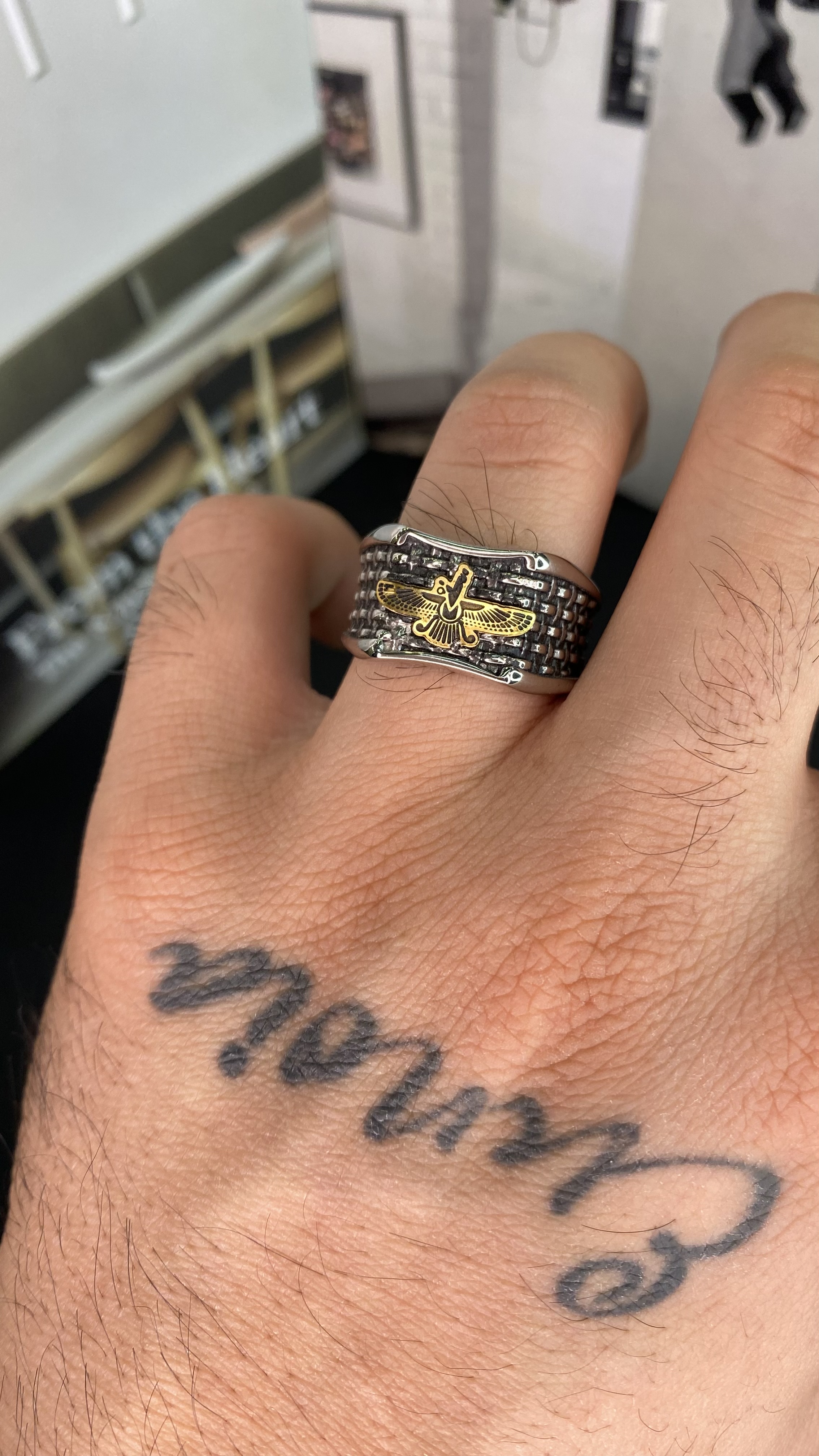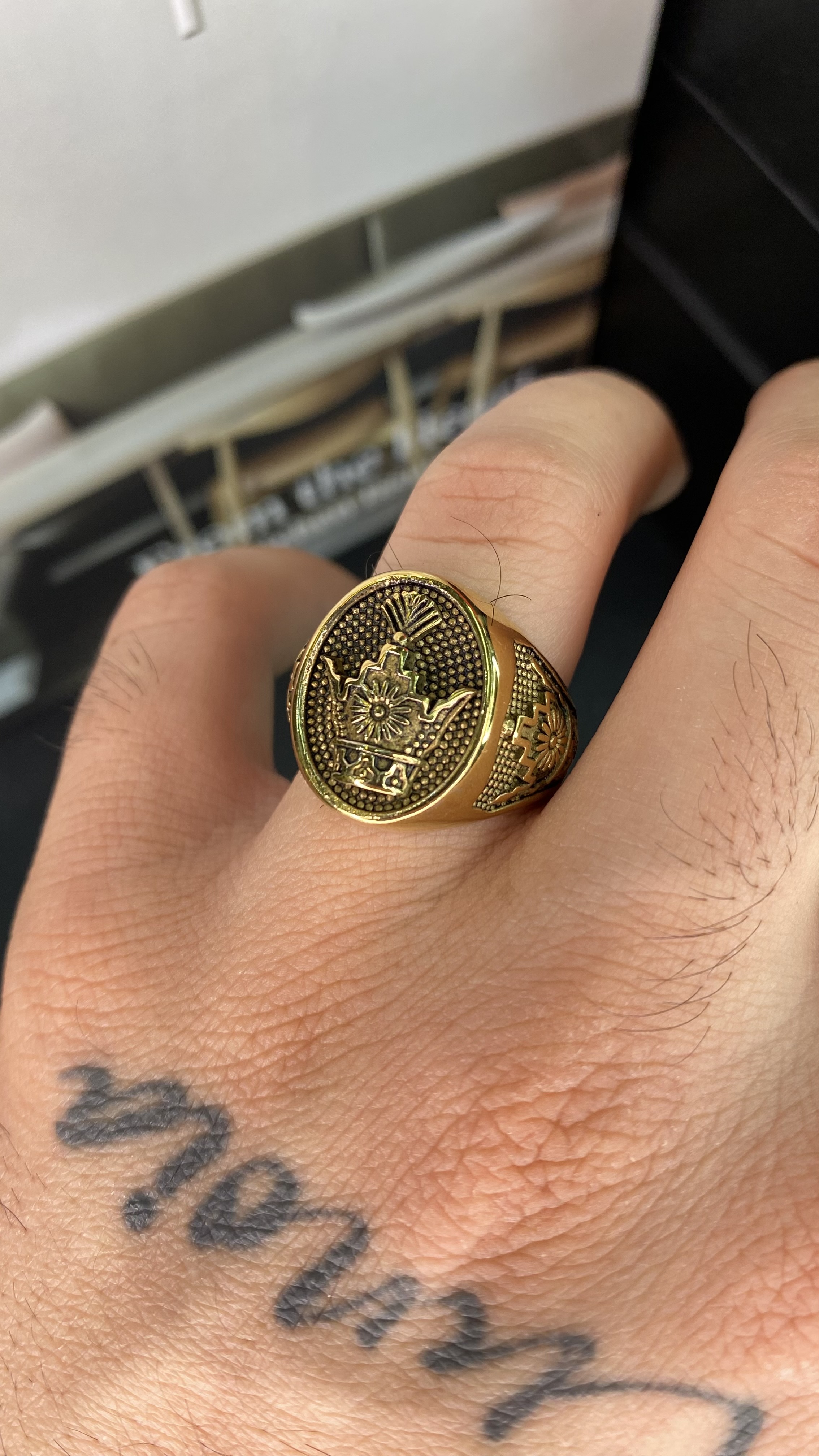 انگشتر مردانه استیل عقاب دو سر طرح طلا