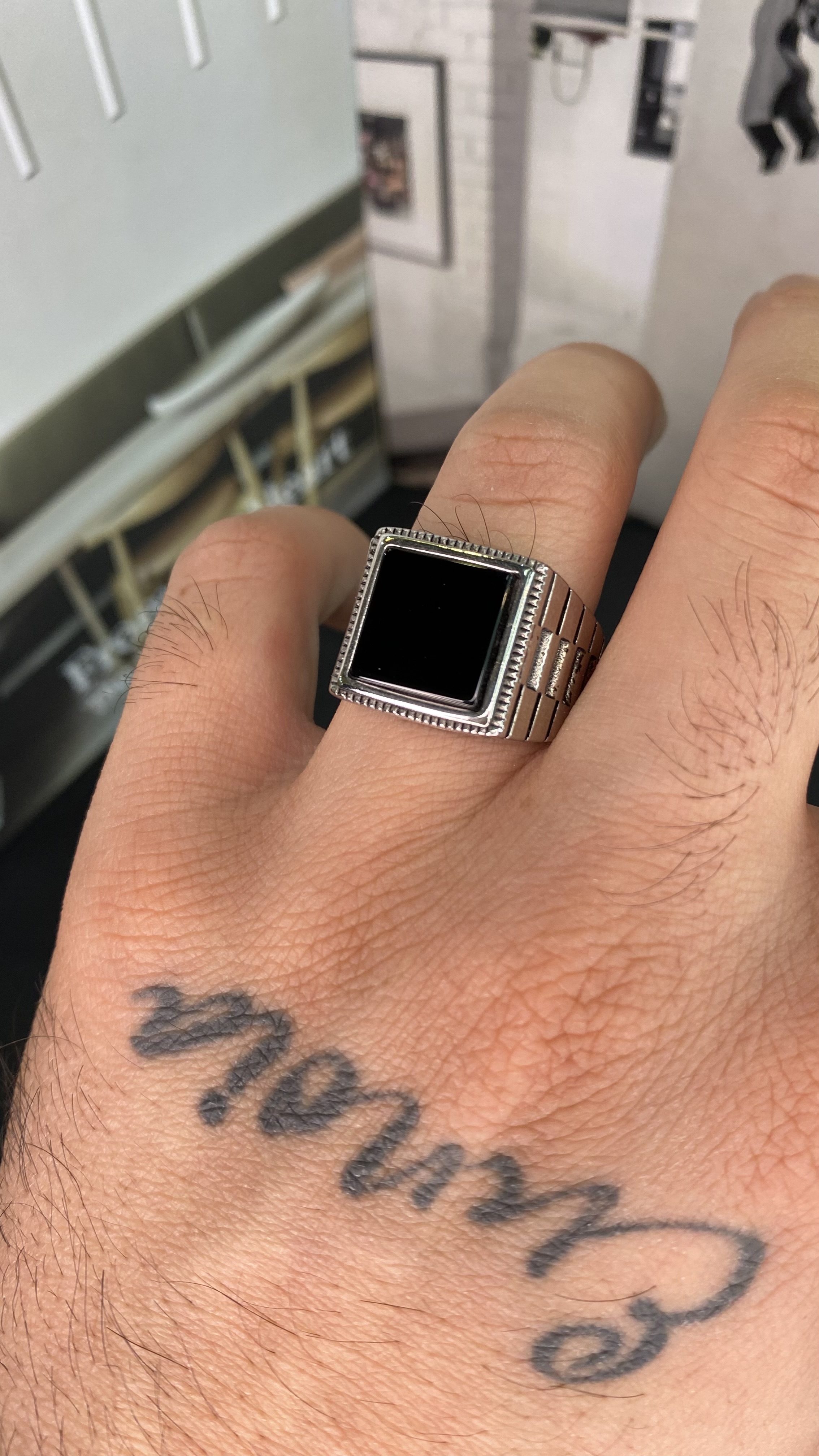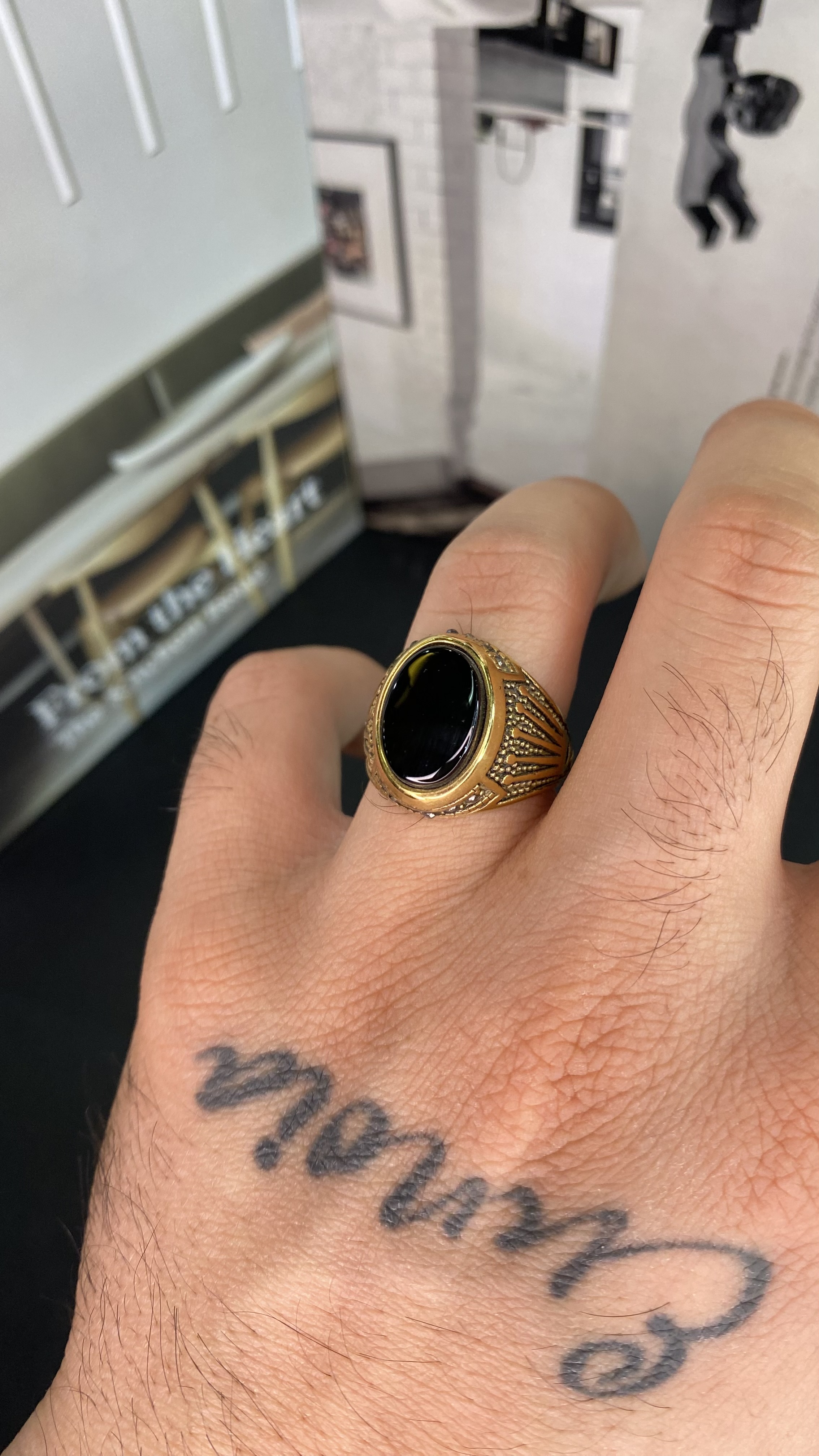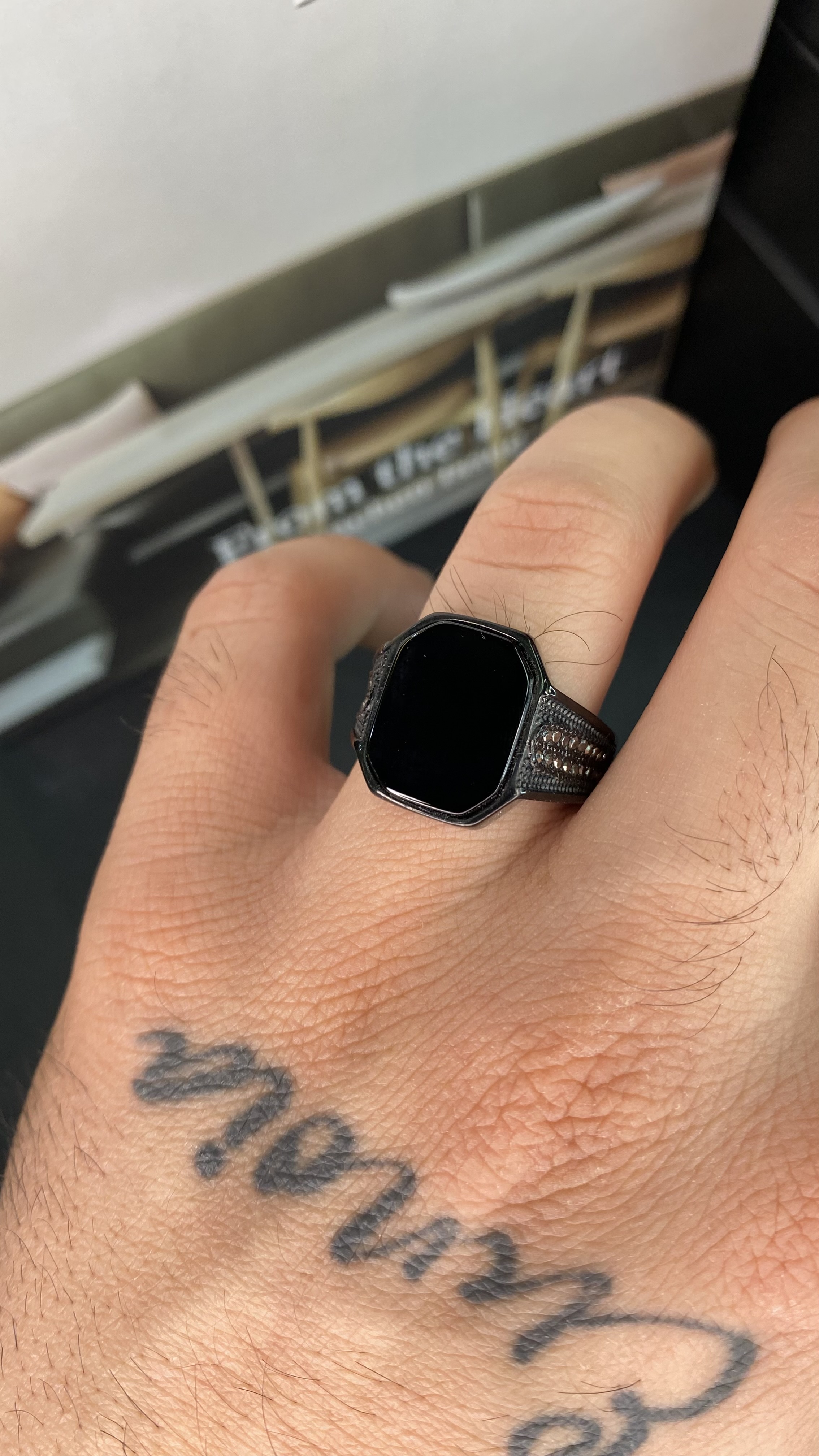 انگشتر مردانه استیل سنگ اونیکس تراش خورده