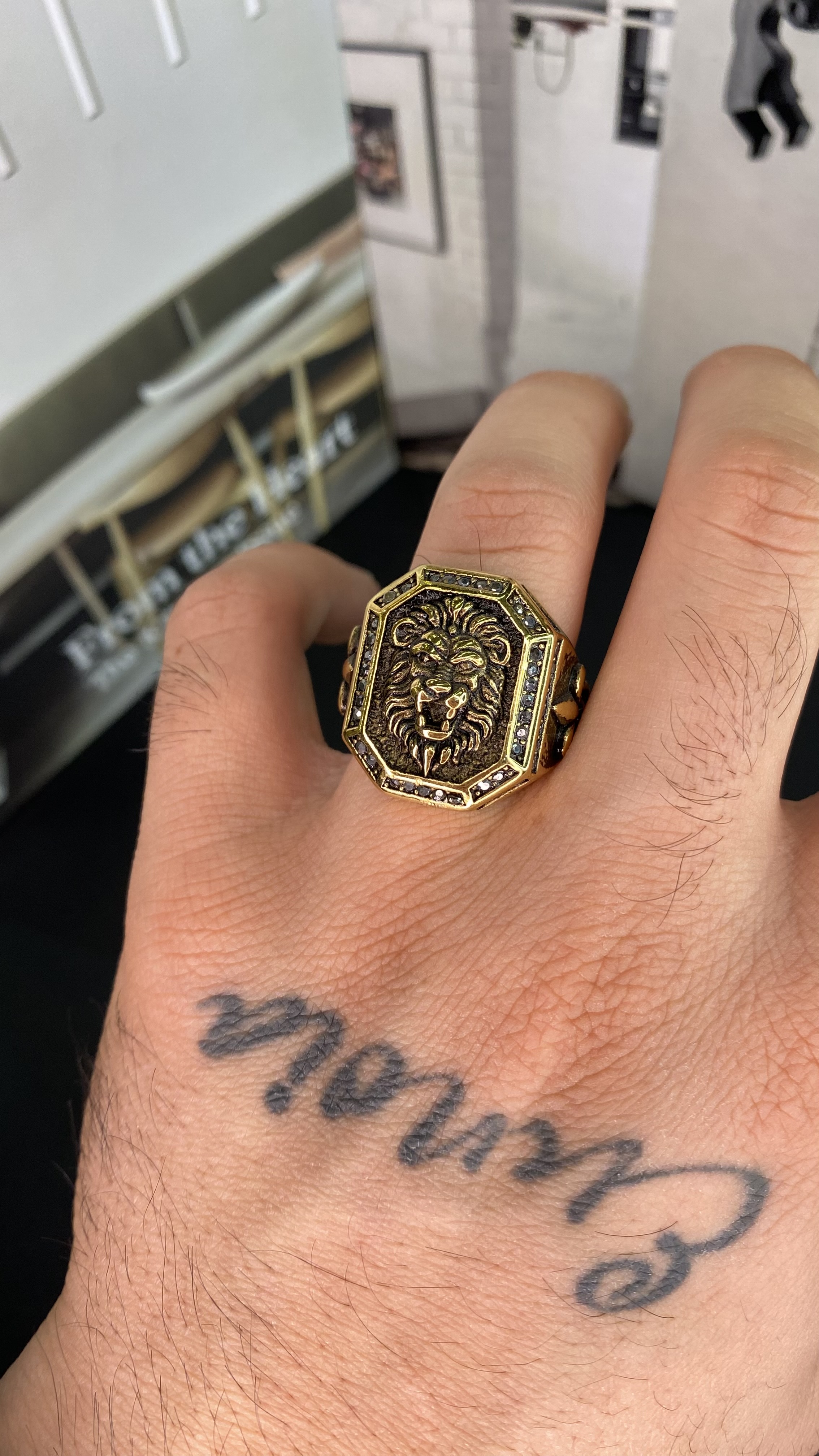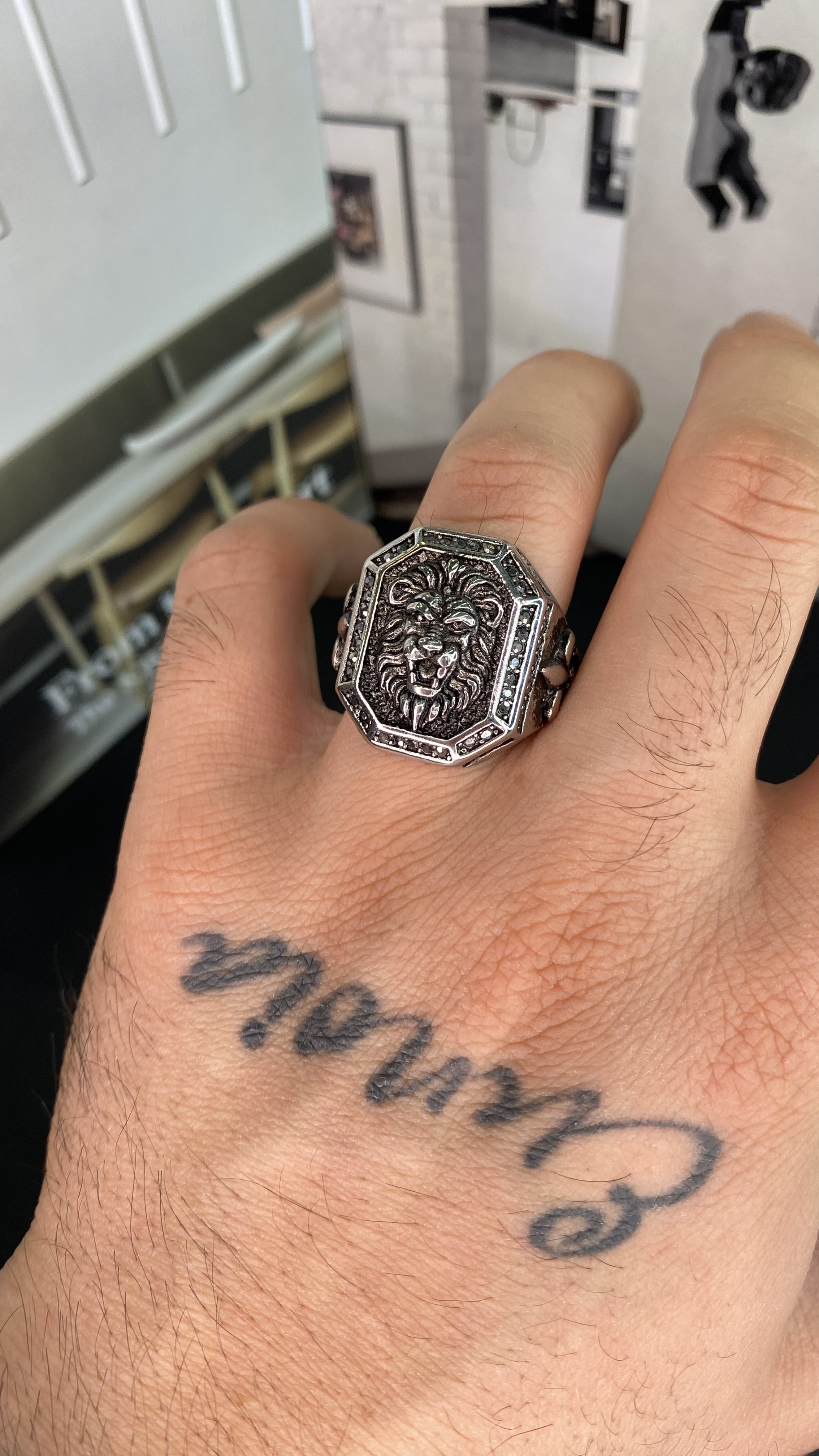 انگشتر مردانه استیل طرح شیر نگین کاری شده