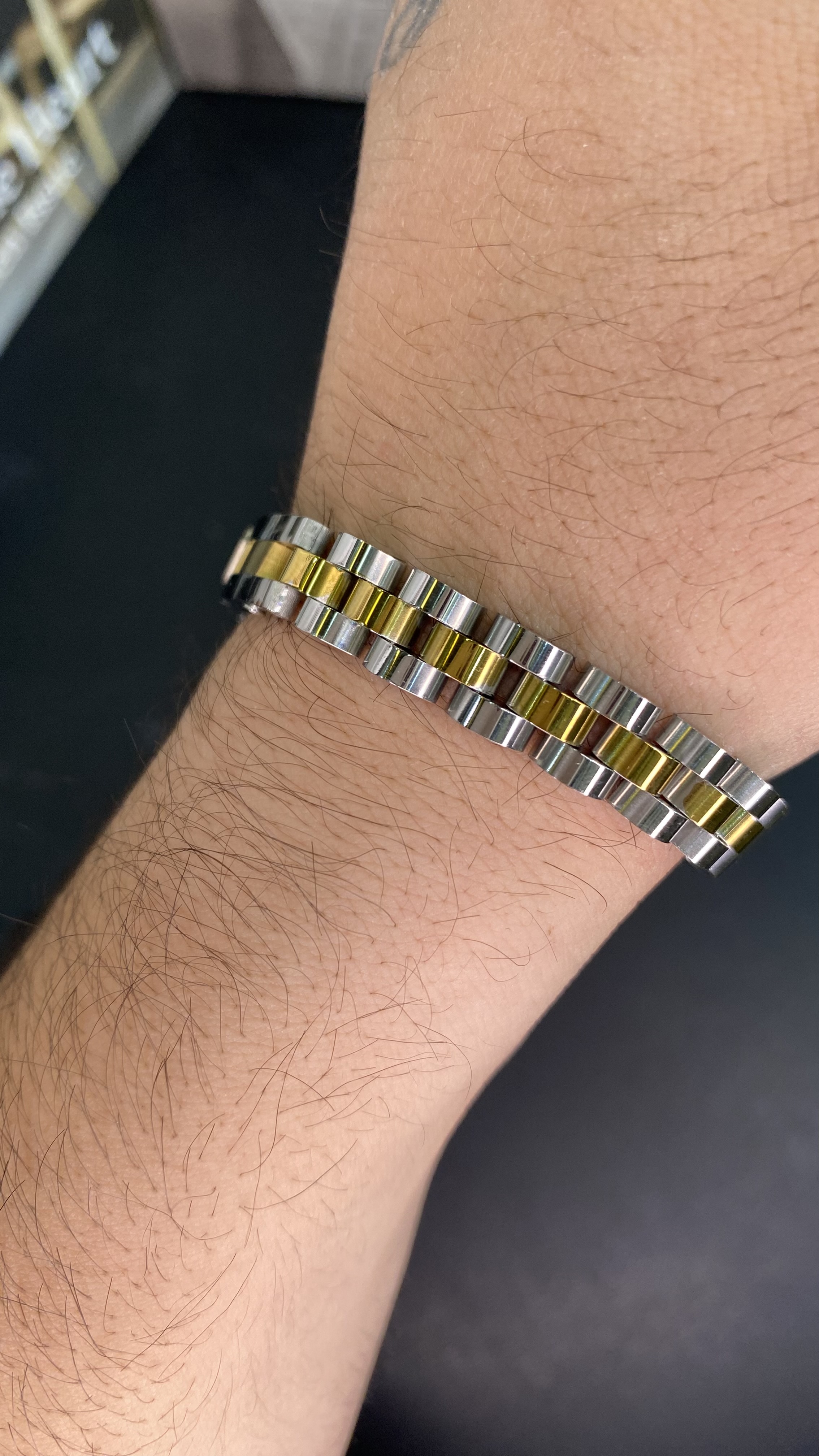 دستهبندی: دستبند مردانهجنس: استیل رنگ ثابتقفل: کتابی مارک دارباکس: دارای باکس و پاکت کادوییبافت: مدل پین بندسایز : قابل کوچک و بزرگ کردنرنگ : نقره ای طلایینمایش بیشتر