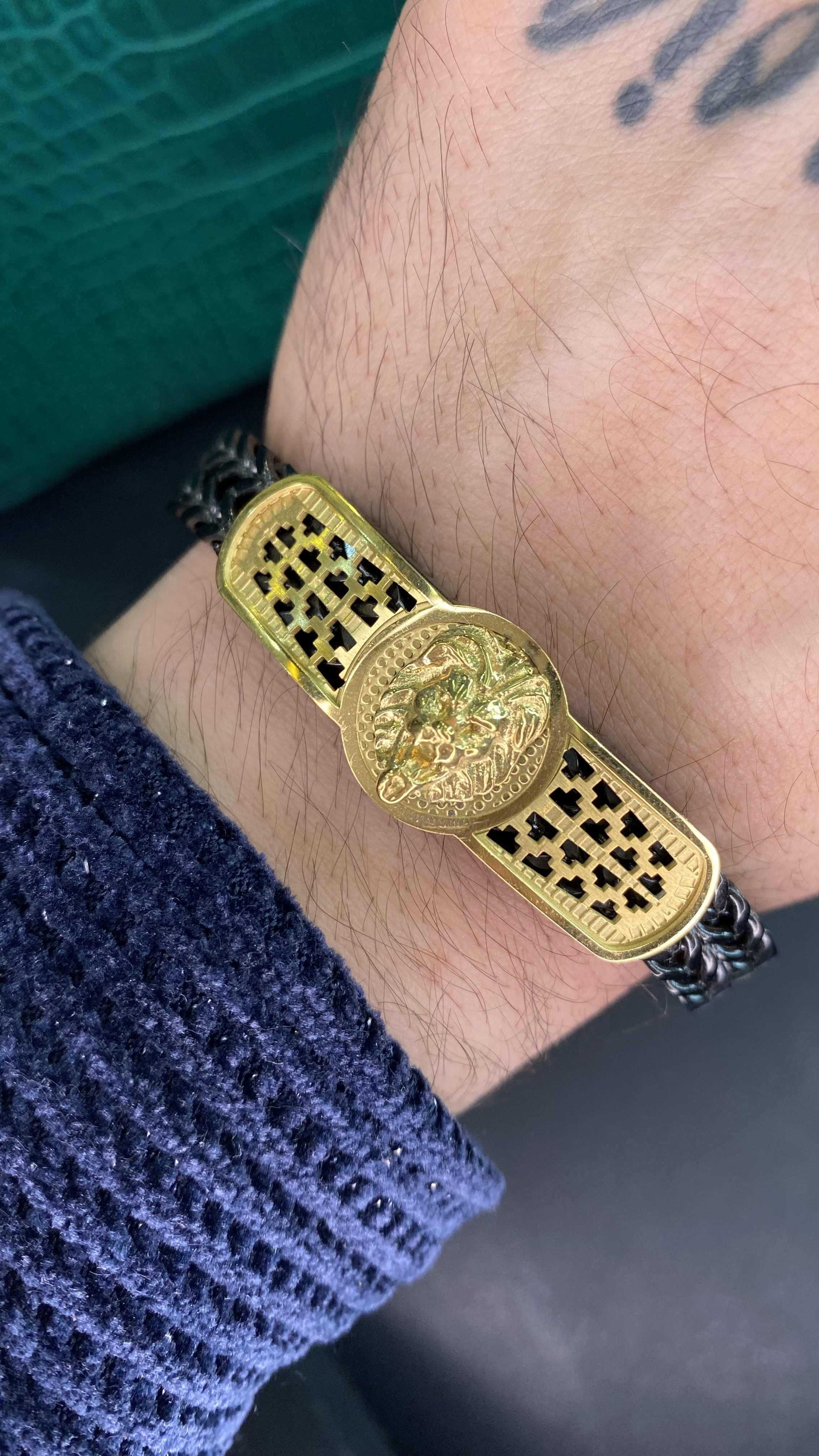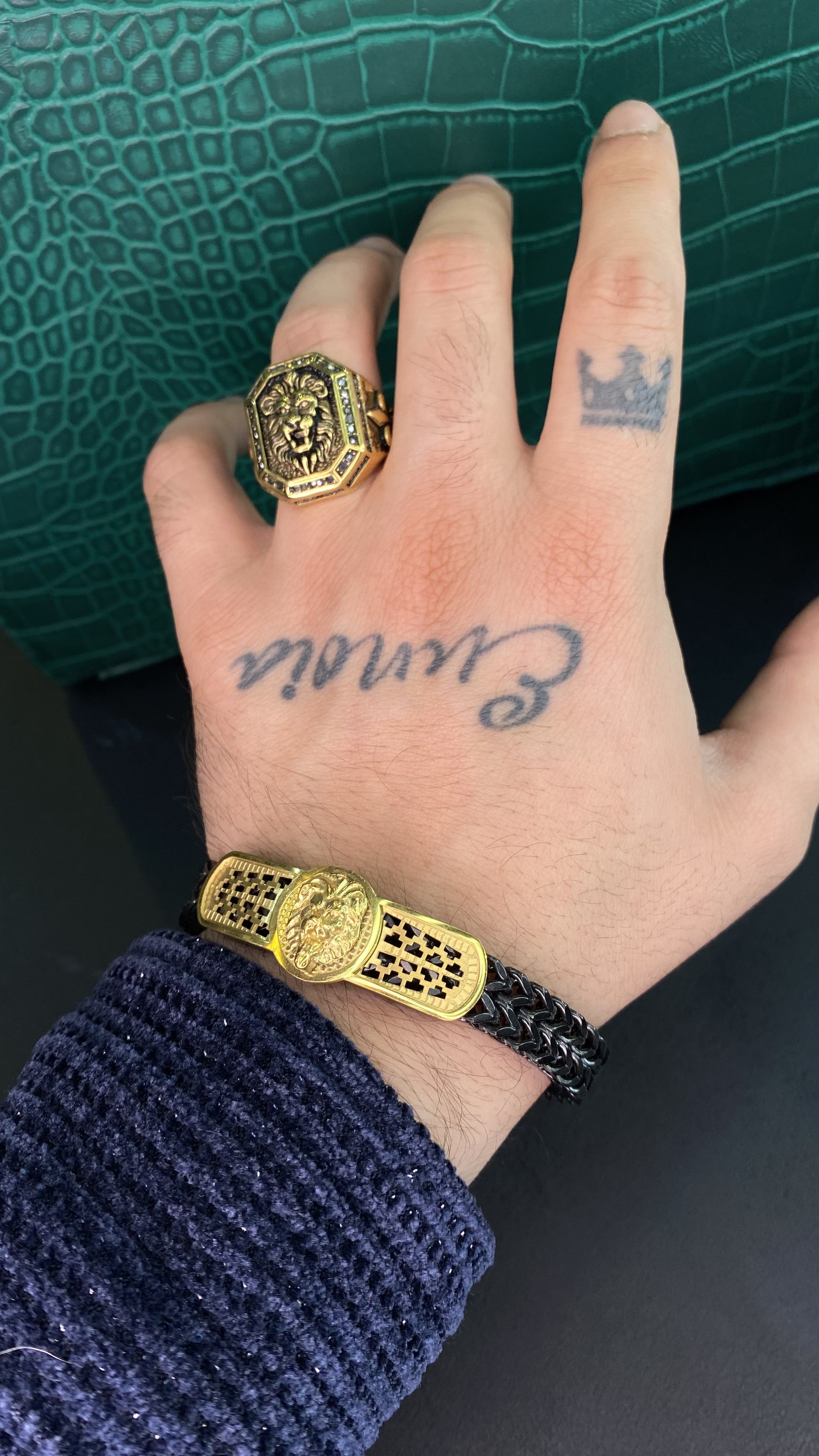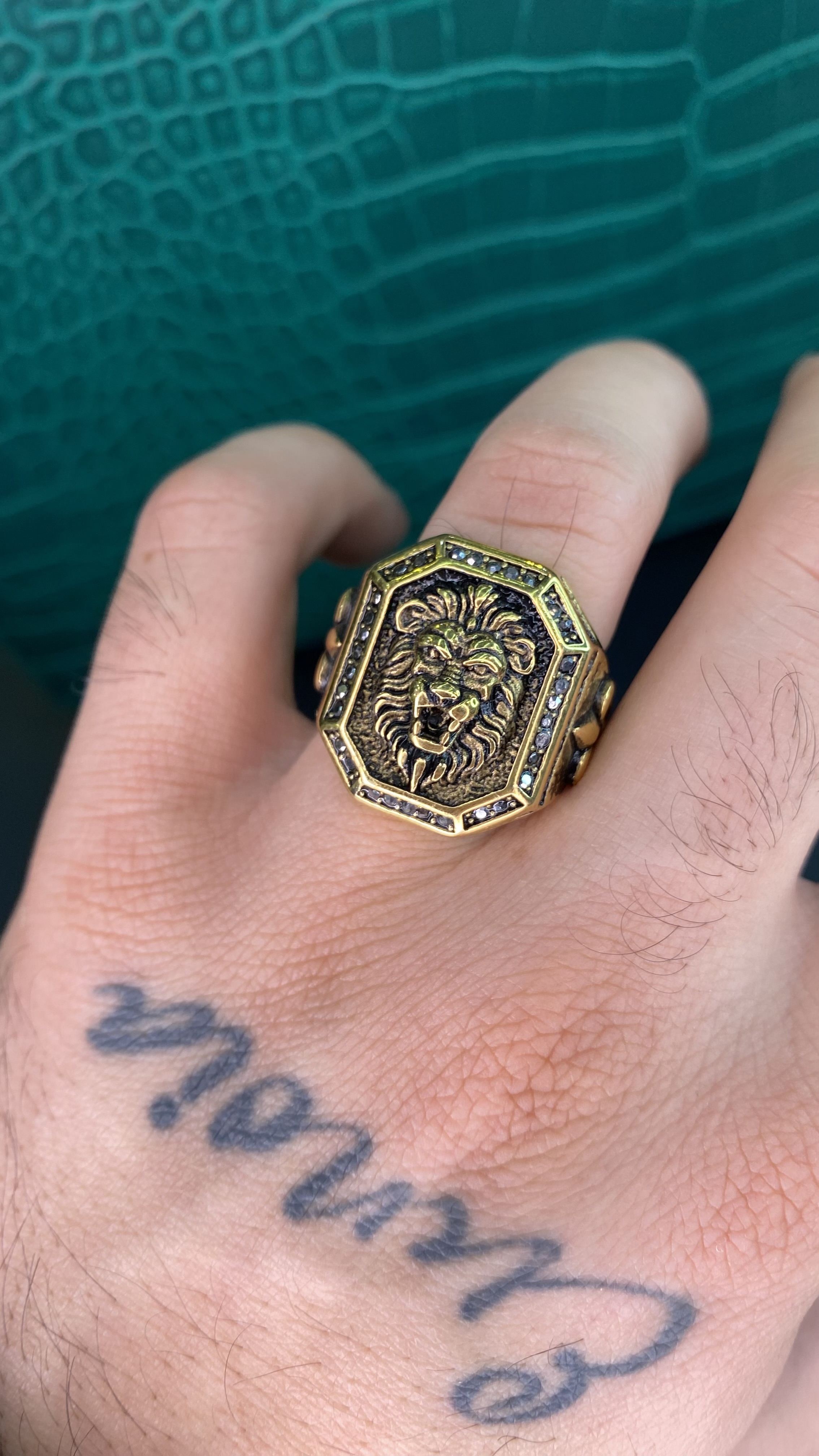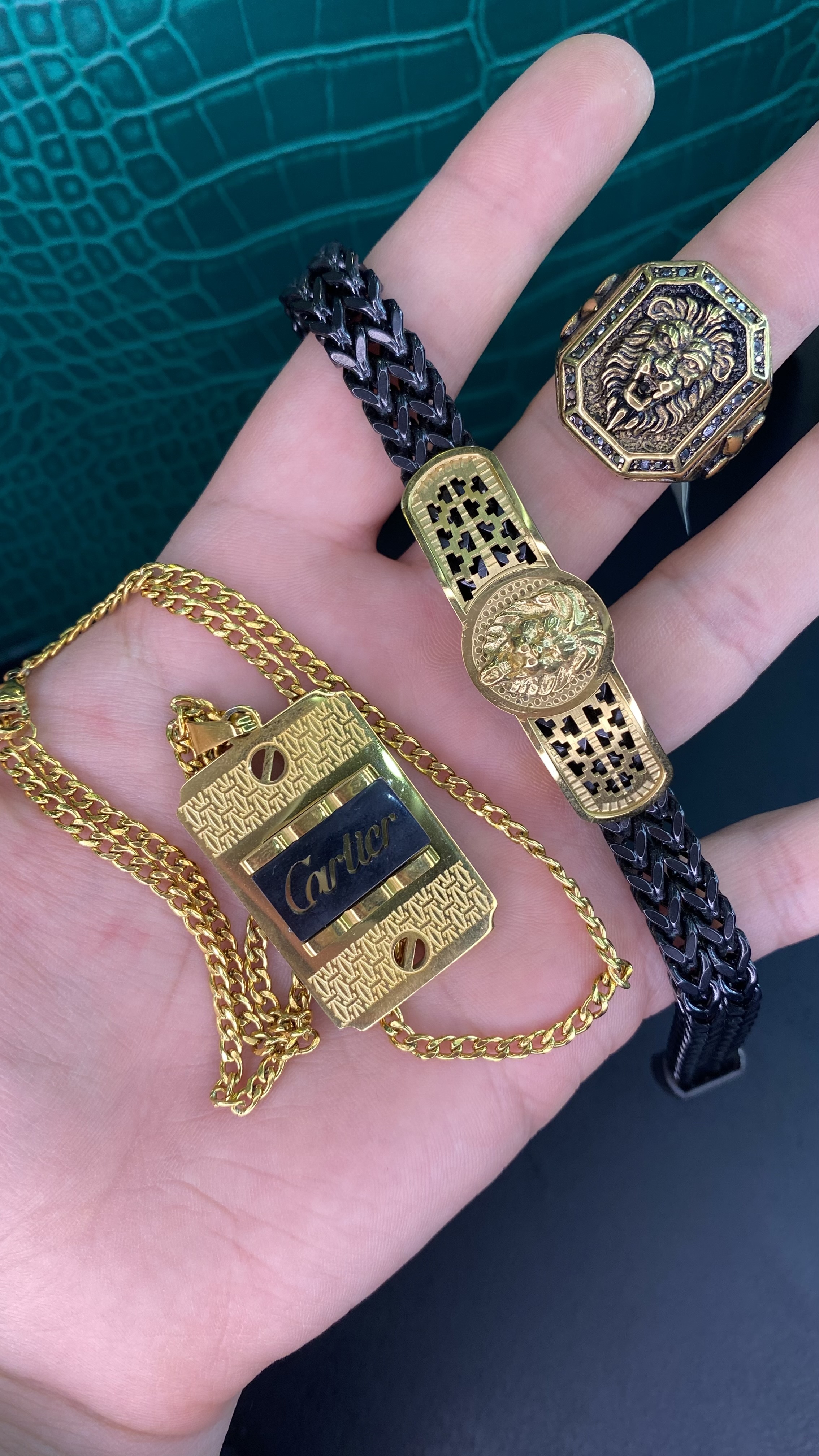 ست ۳ تیکه دستبند انگشتر و گردنبند طرح شیر مردانه استیل