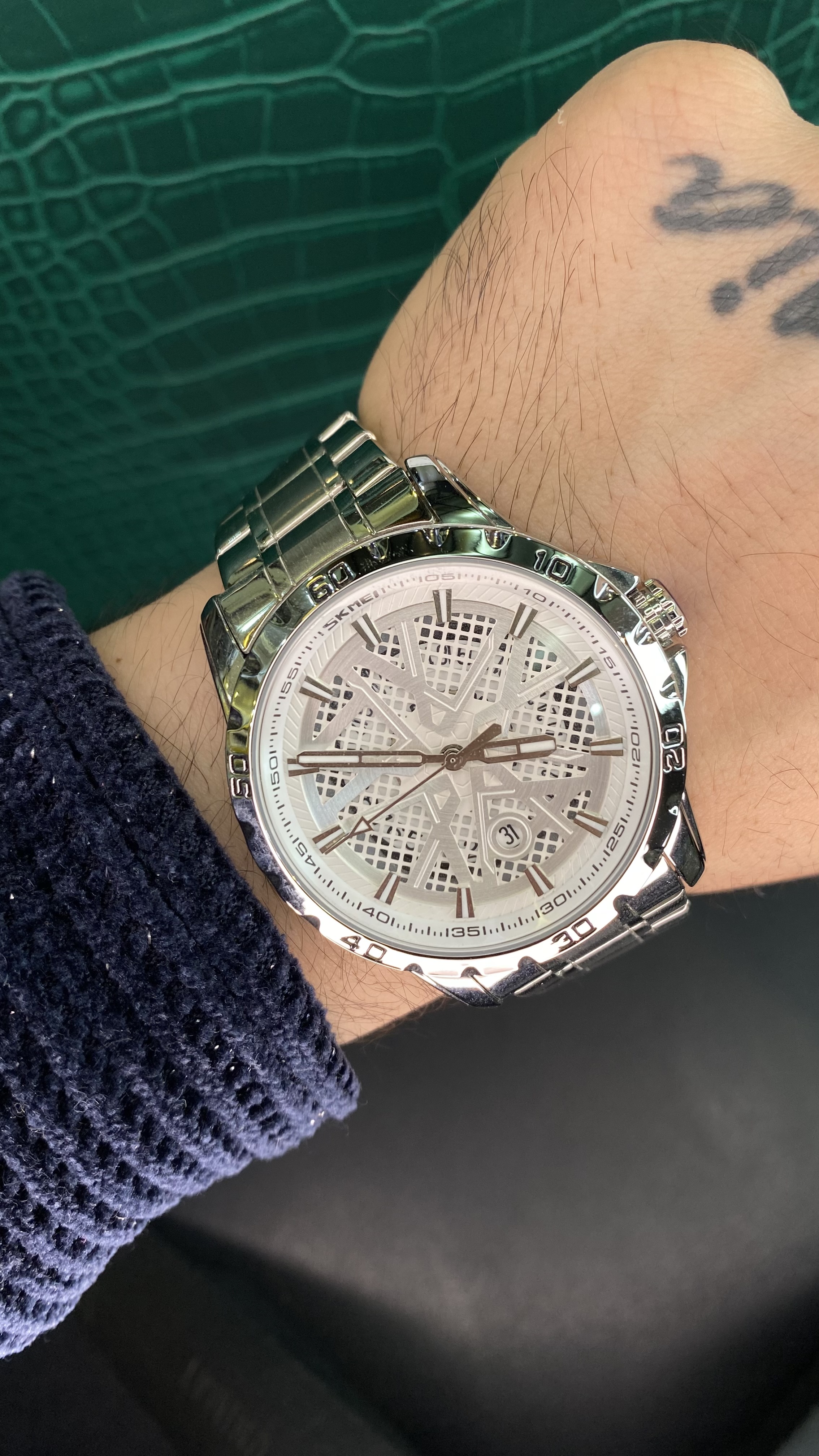 دستهبندی: ساعت مردانهجنس: استیل رنگ ثابتقفل: ضامن داررنگ: بدنه سیلور زمینه سفیدجزئیات: طراحی منحصر به فرد زمینهگارانتی : دارای کارت ضمانت ۱ سالهموتور : کوارتزنمایش بیشتر