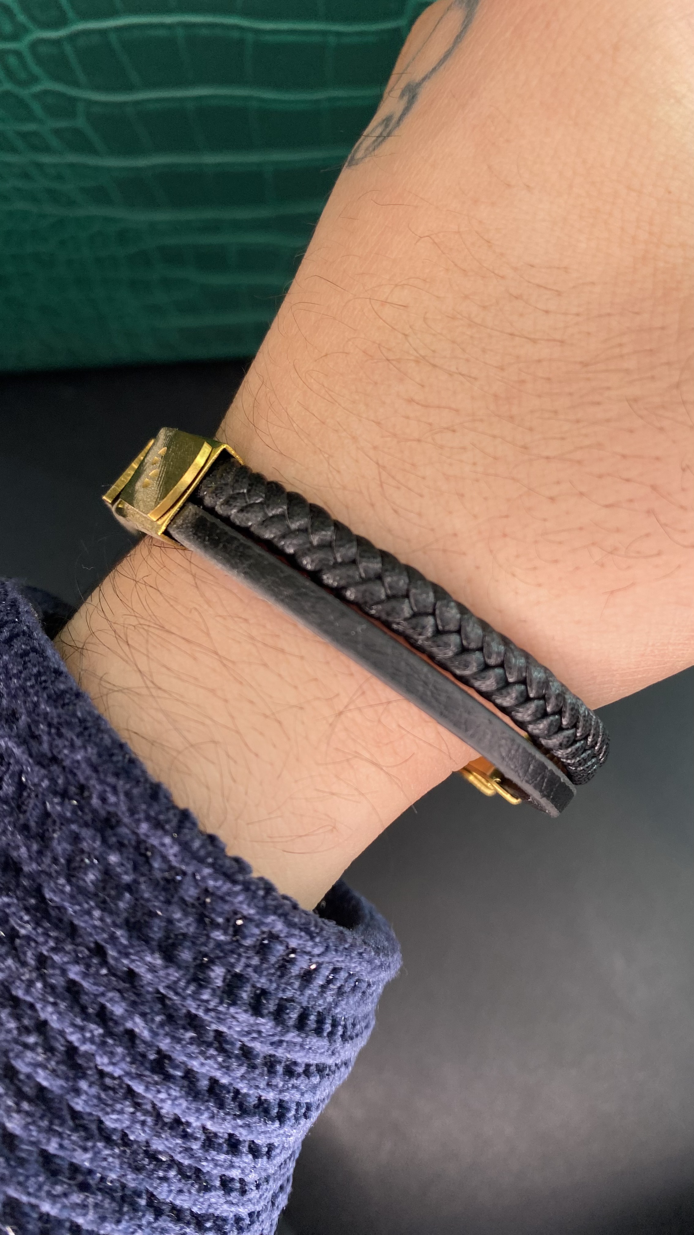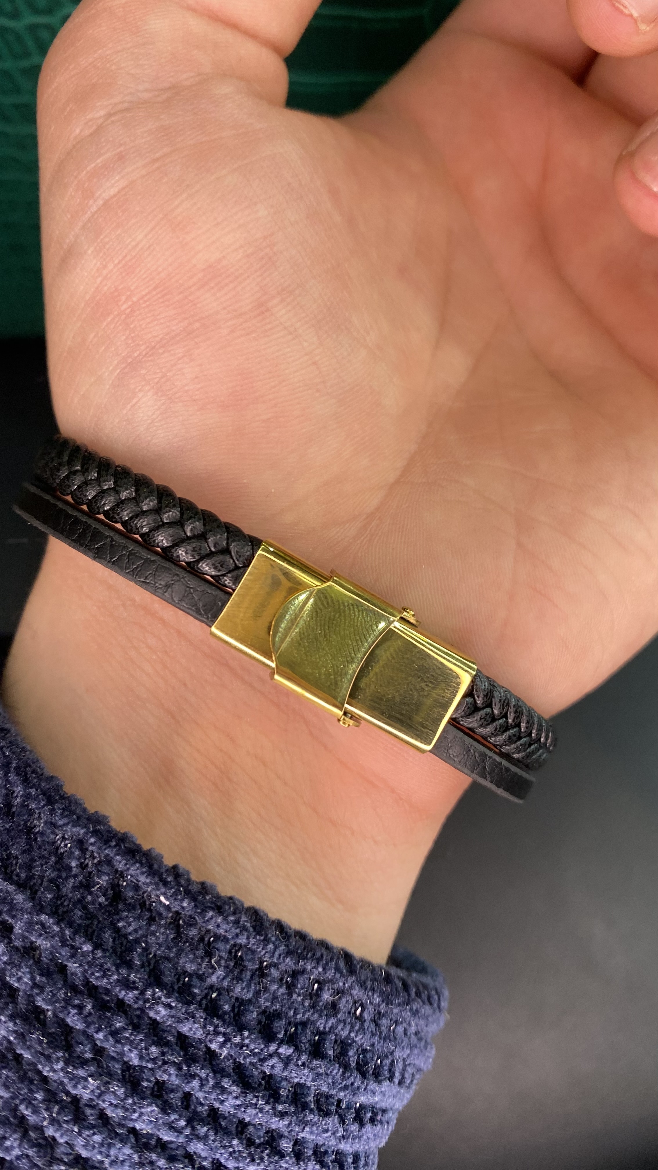 دستهبندی: دستبند مردانهجنس: چرمی و استیل رنگ ثابتقفل: کلیپسیباکس: دارای باکس و پاکت کادوییبافت: چرمی پلاکداررنگ : مشکی طلایینمایش بیشتر