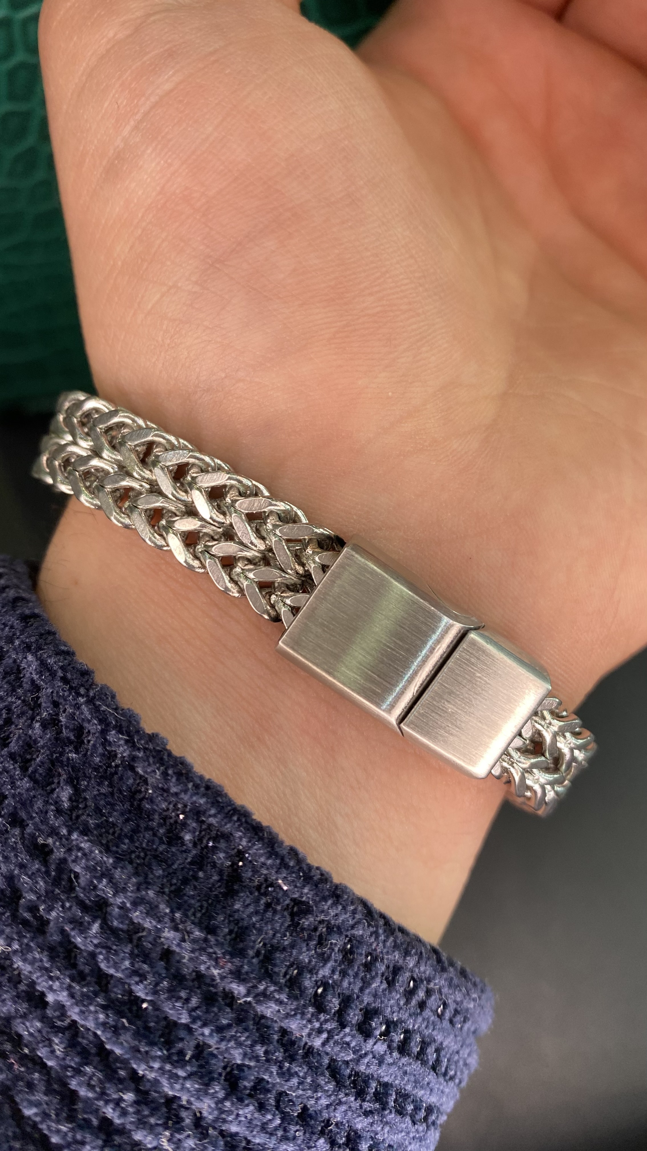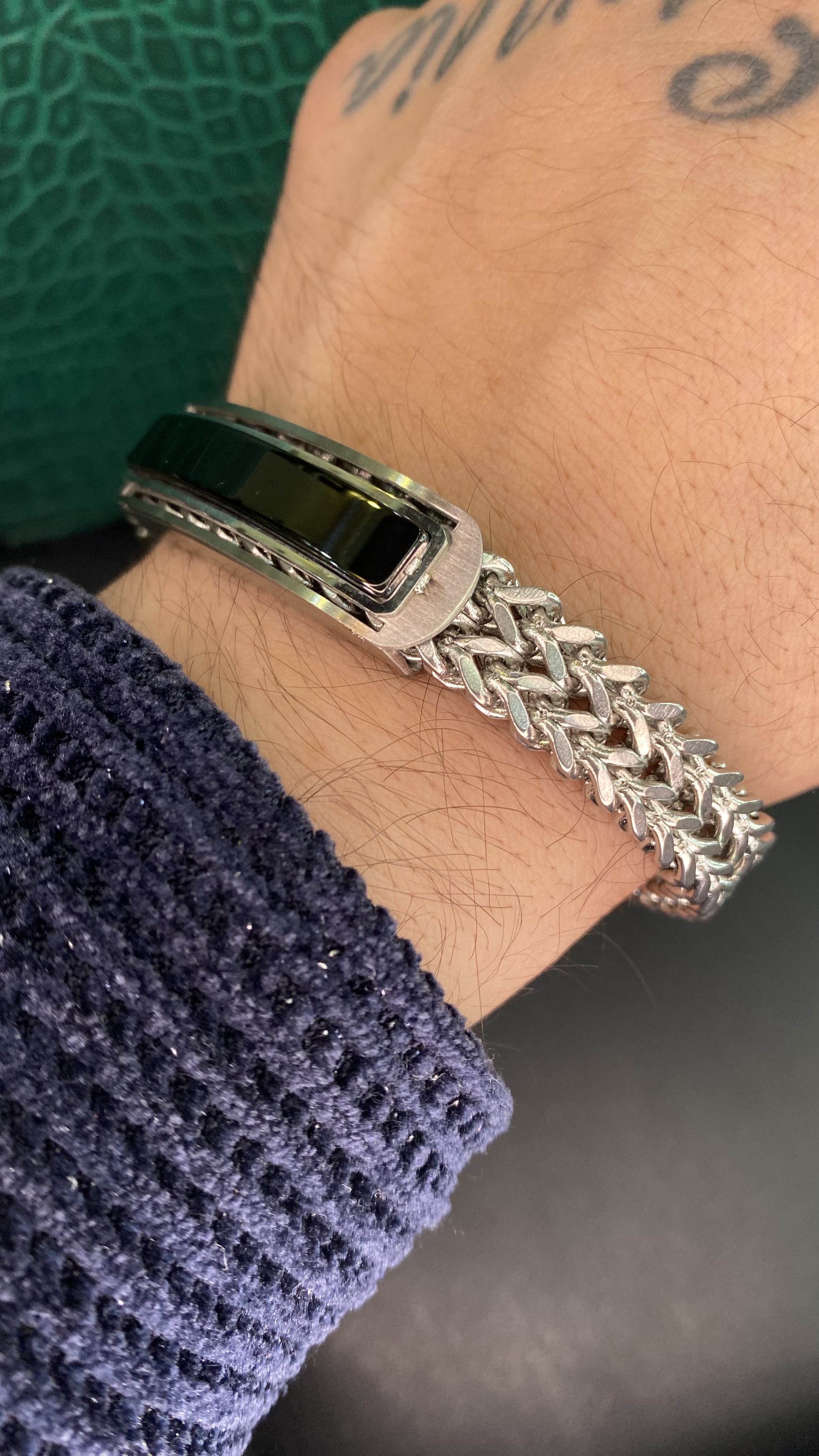 دستهبندی: دستبند مردانهجنس: استیل رنگ ثابتقفل: مگنتی مارک دارباکس: دارای باکس و پاکت کادوییبافت: مدل کارتیر معکبیرنگ : سیلورنمایش بیشتر