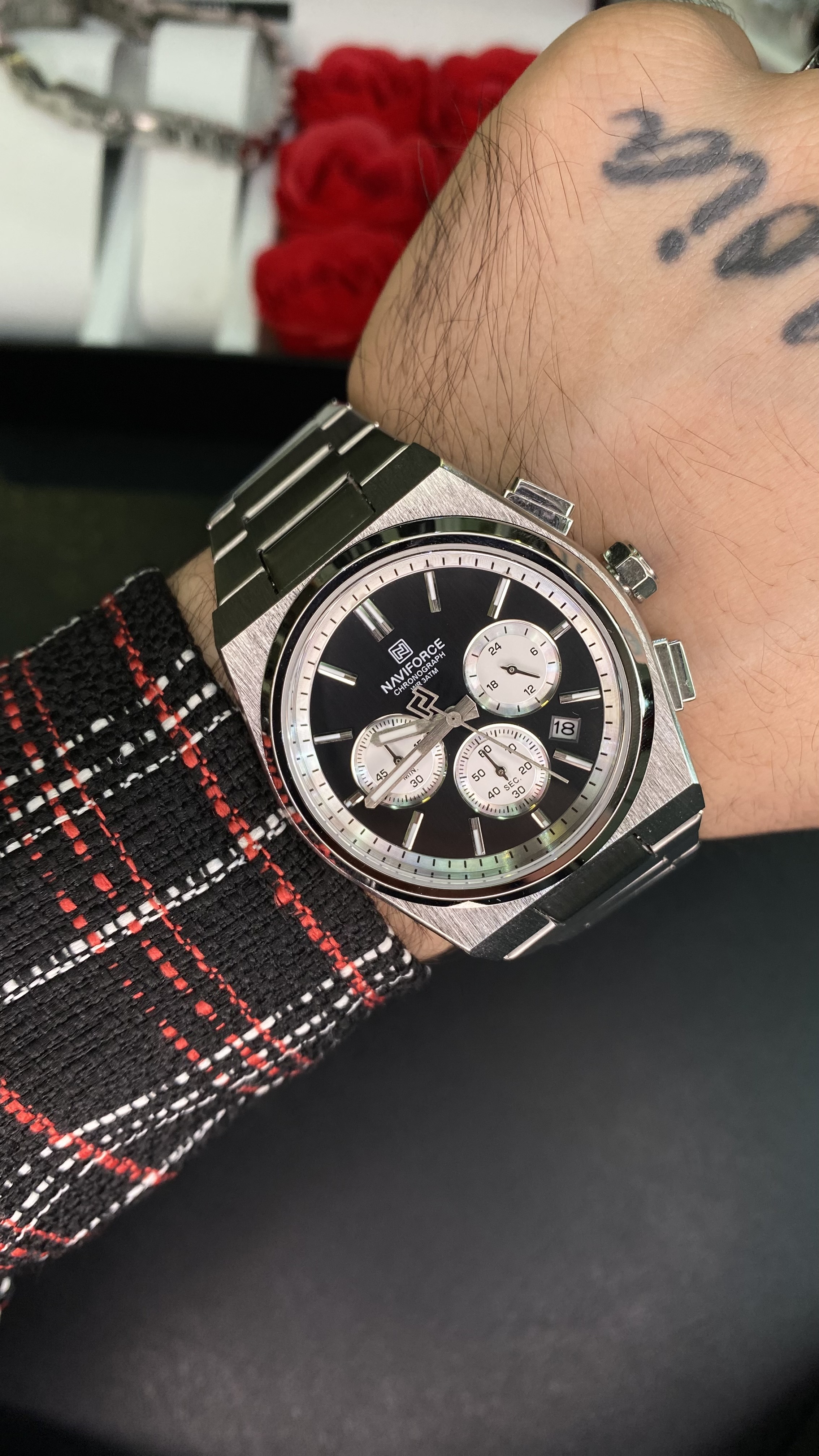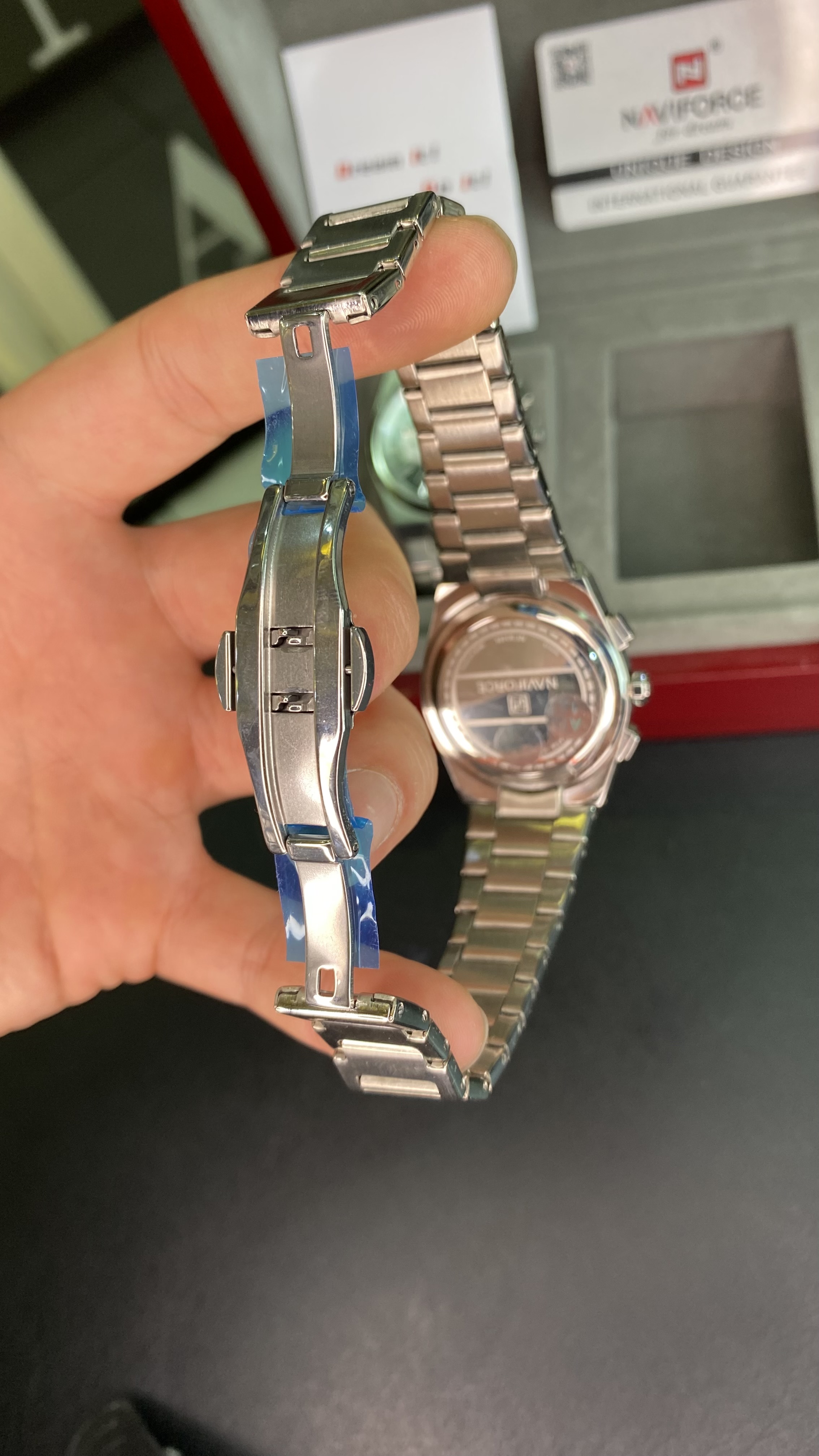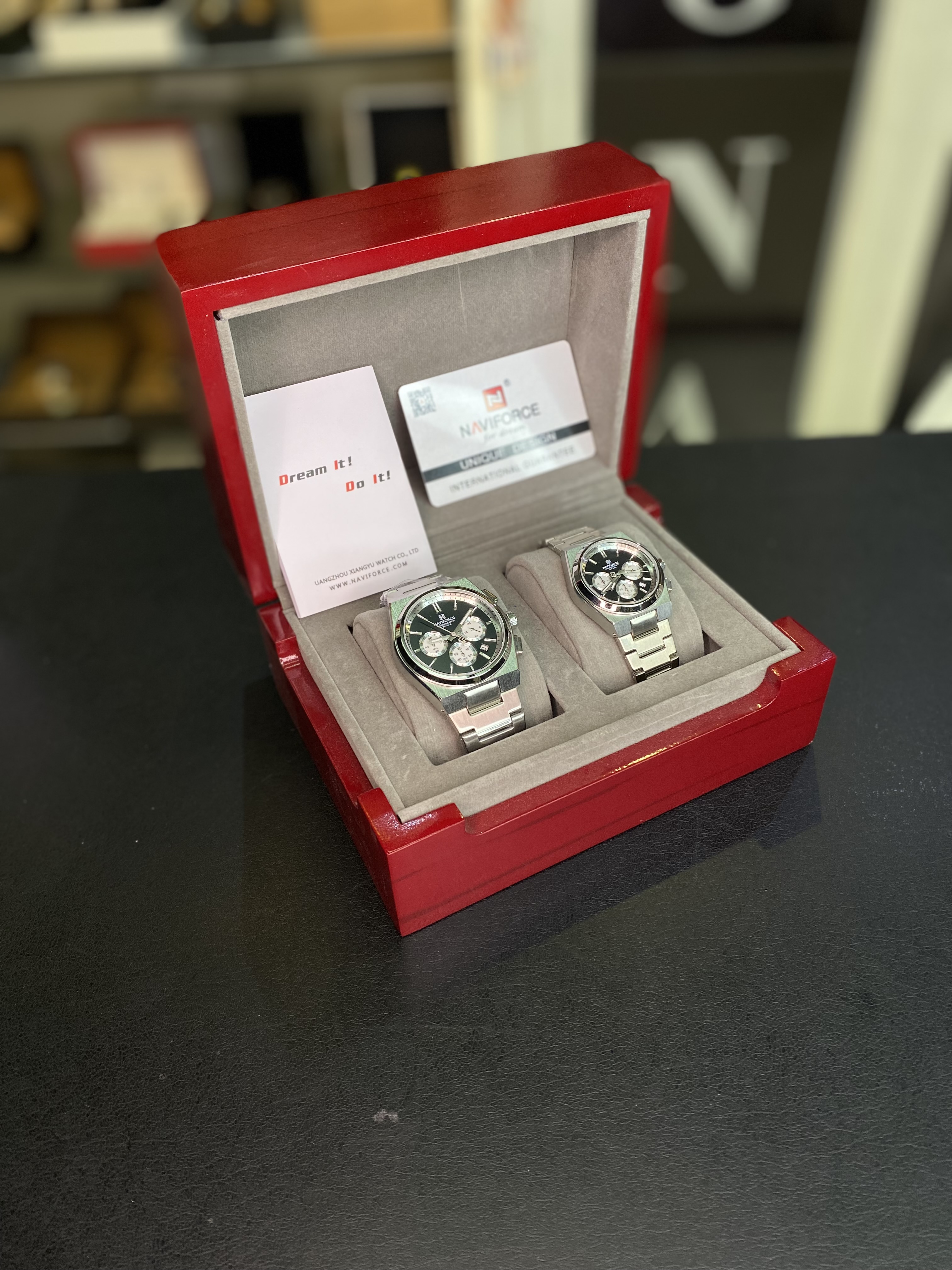 ست ساعت زنانه مردانه نیوی فورس ارجینال سه موتور فعال و دارای ماه شمار قفل پروانه ای استیل دارای شناسنامه و کارت گارانتی جنس بدنه استیل و رنگ ثابت