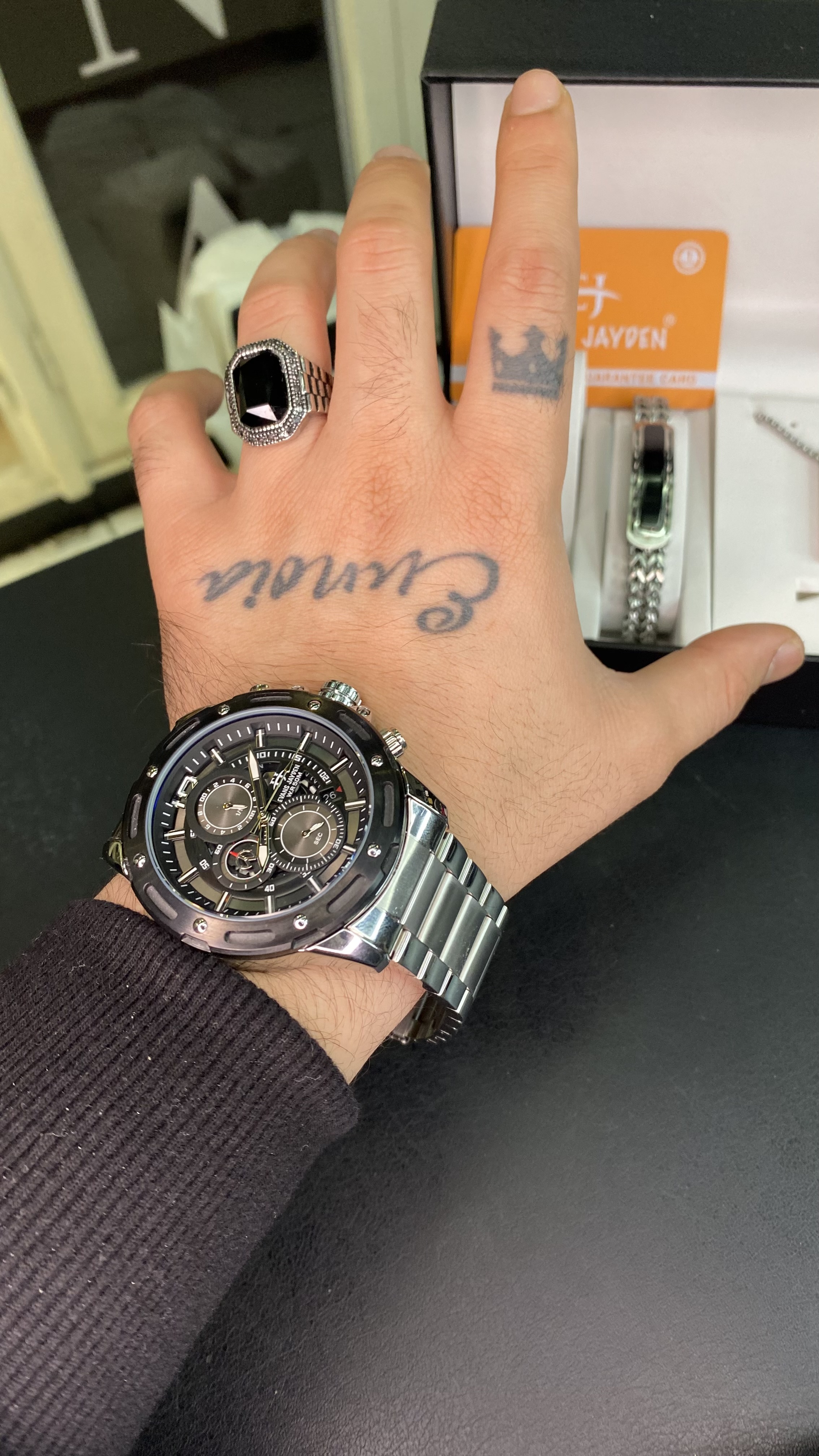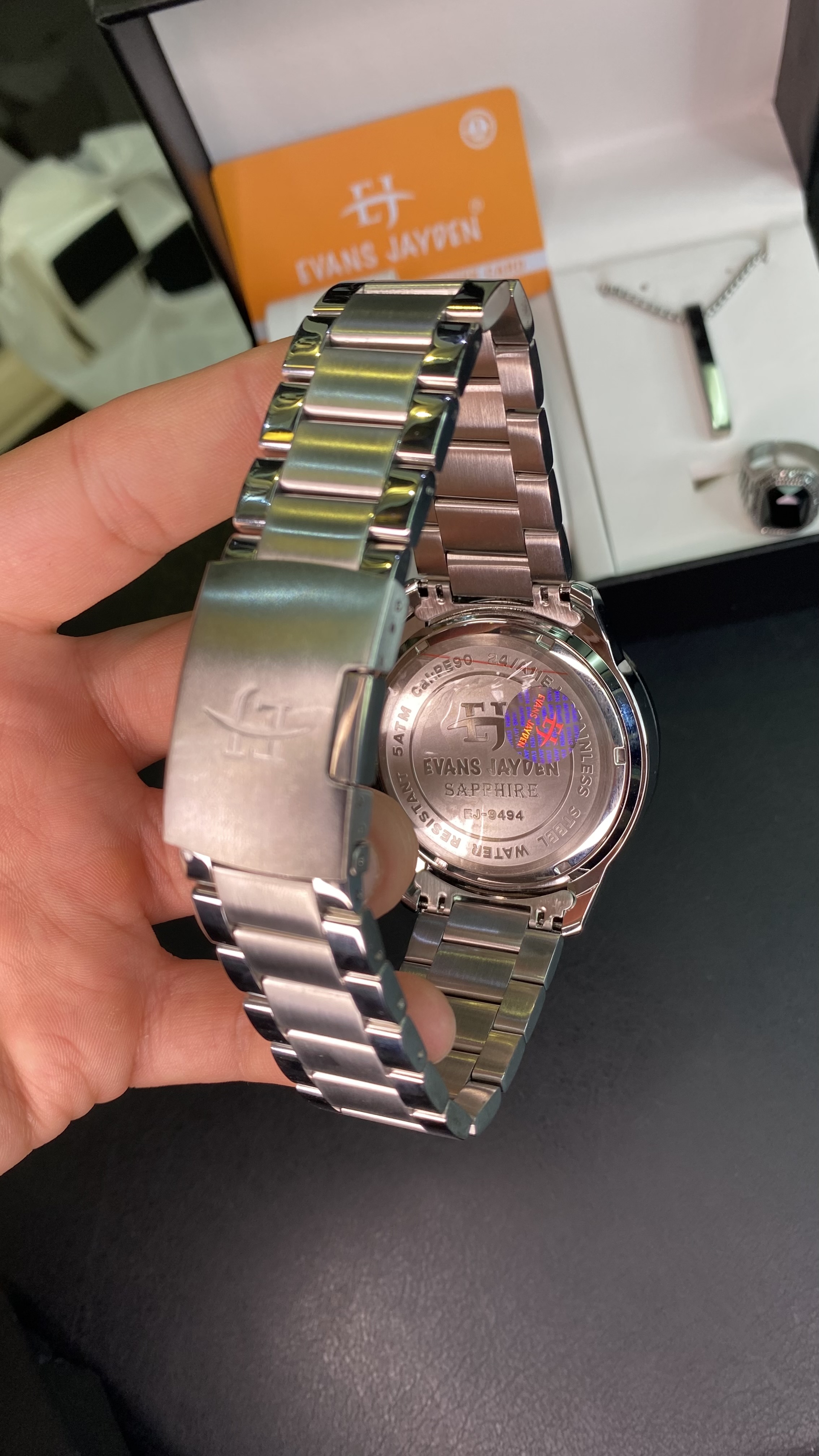 ساعت مردانه برند ایوانس جیدن ارجینال سه موتور فعال دارای ماه شمار جنس بدنه استیل رنگ سیلور دارای کارت ضمانت موتور و رنگ