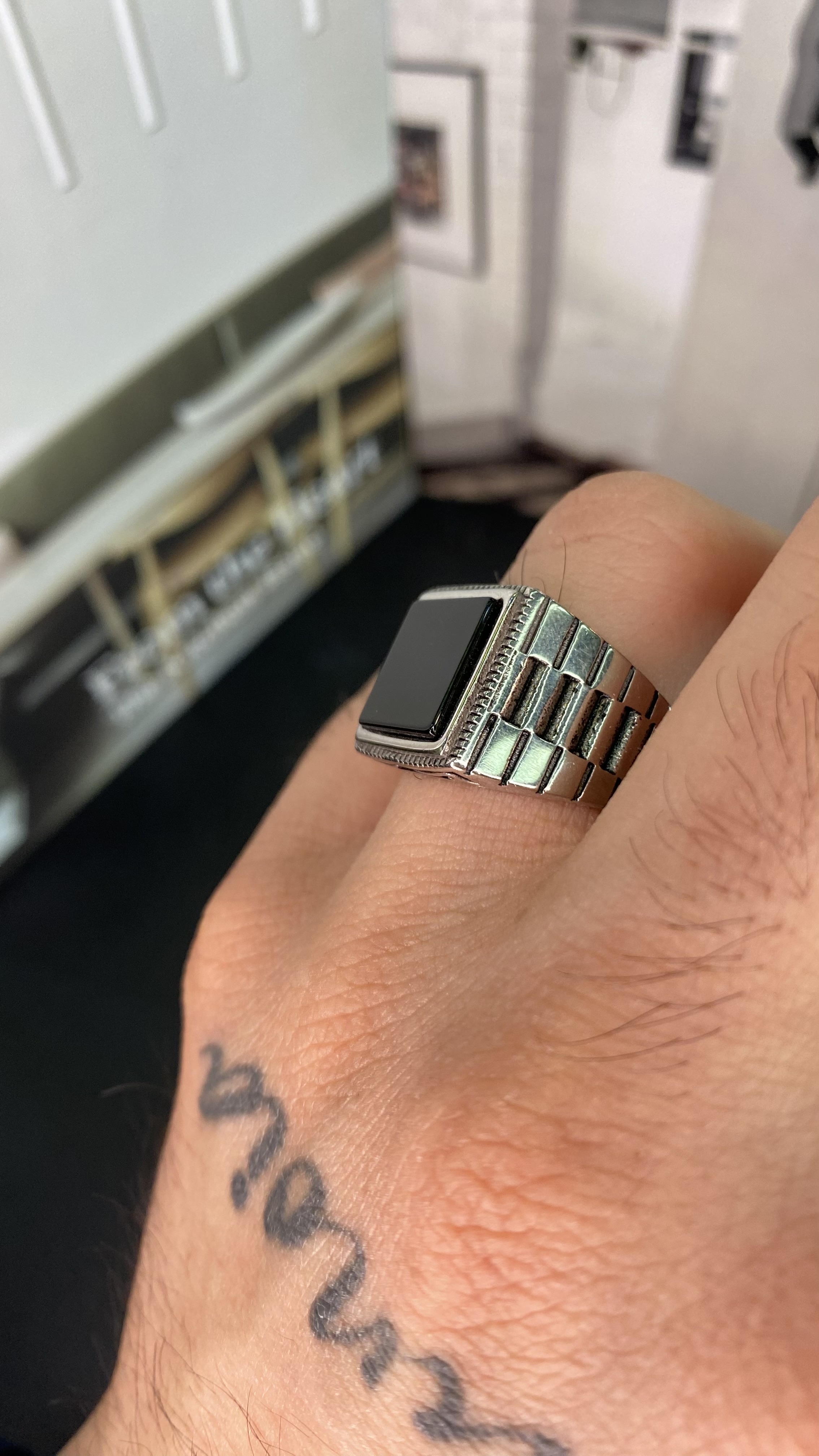 انگشتر مردانه استیل سنگ اونیکس