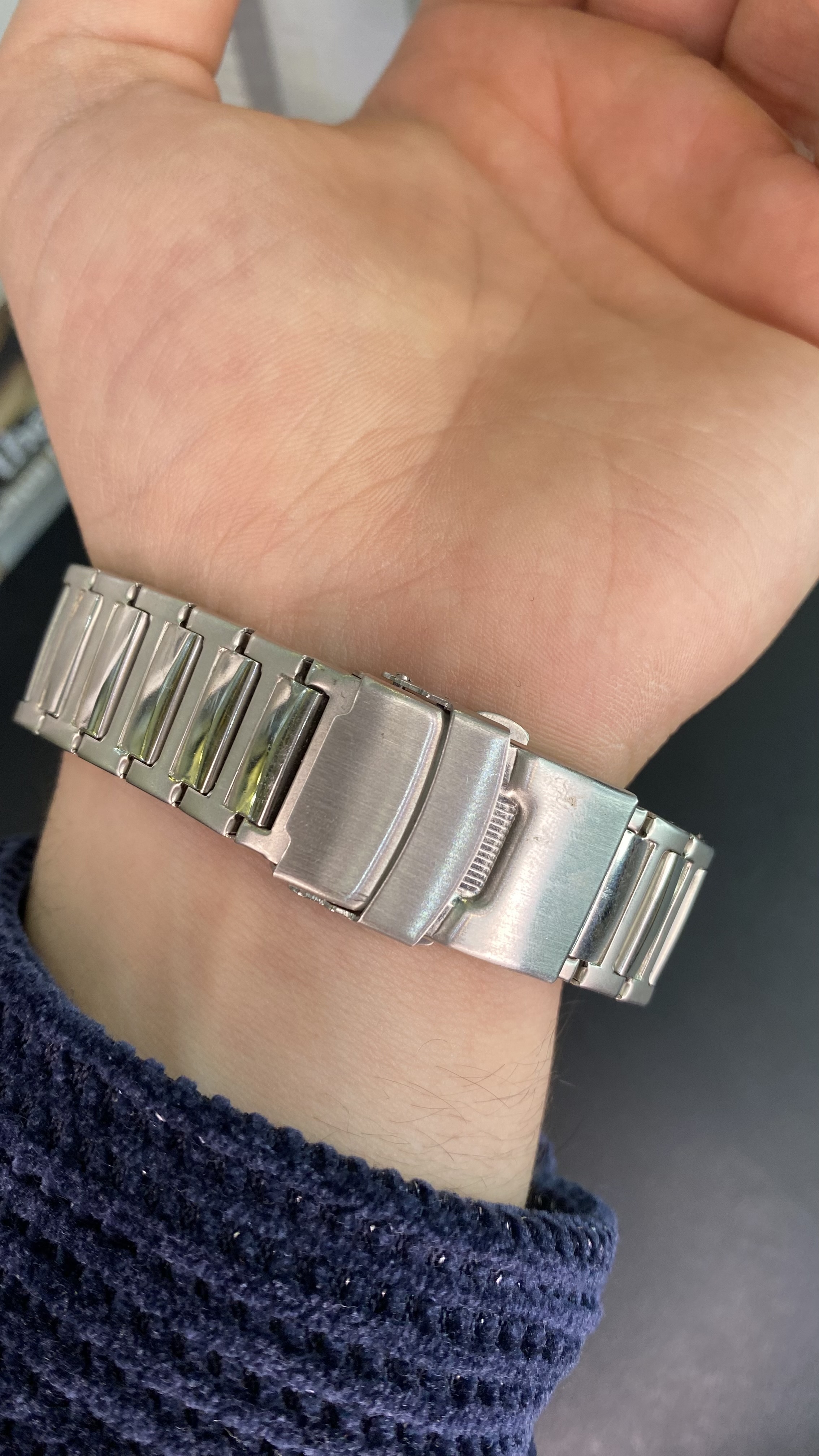 دستهبندی: ساعت مردانهجنس: استیل رنگ ثابتقفل: ضامن داررنگ: بدنه سیلور زمینه ابیجزئیات: ماه شمارگارانتی : دارای کارت ضمانت ۱ سالهموتور : کوارتزنمایش بیشتر